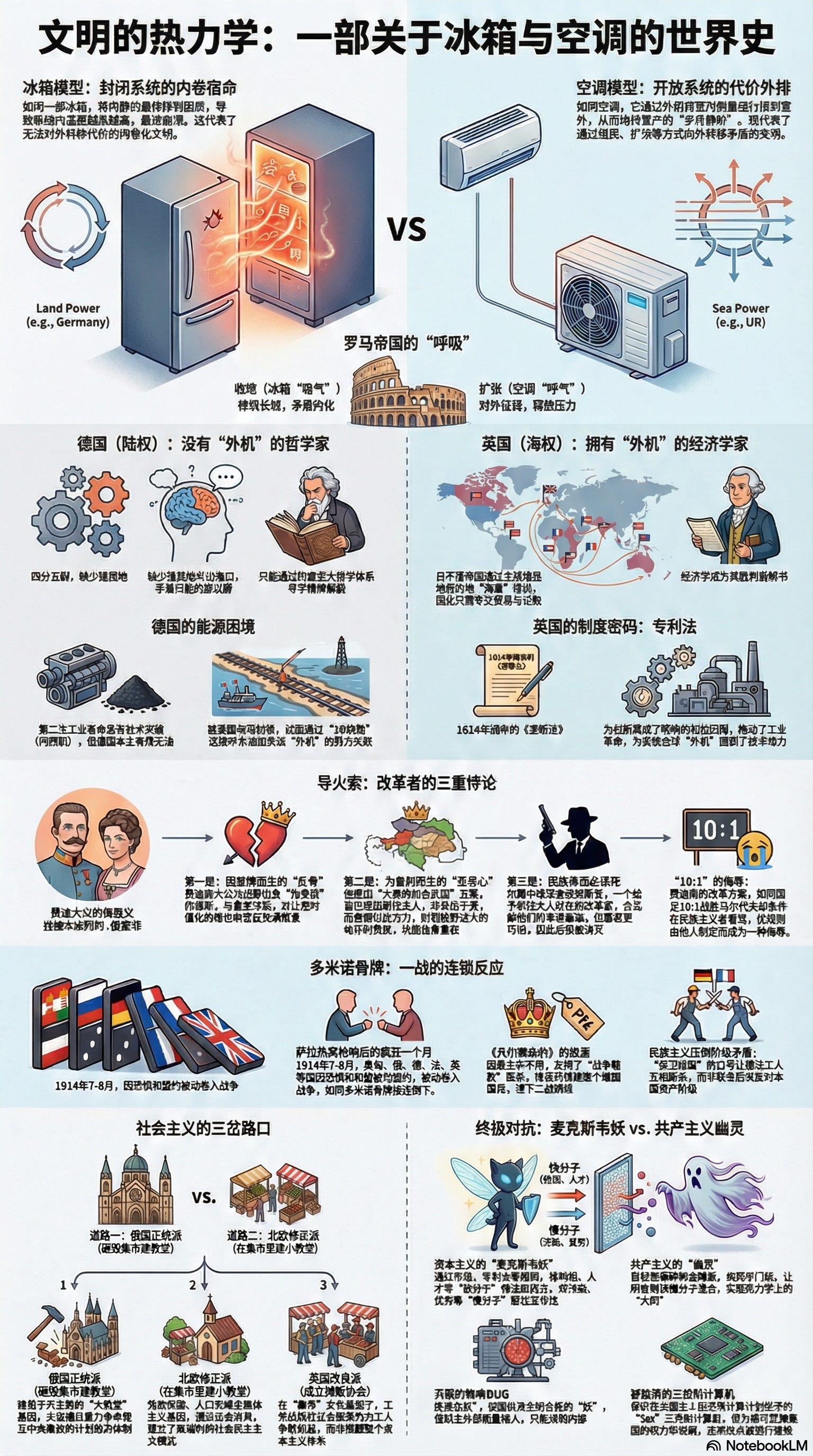 梁启超写《少年中国说》,是在中国最腐朽、被列强压迫最深的时候,试图用一股少年的狂气,去唤醒一个古老民族的政治新生。马克思也是如此。他代表了那个并未统一、却充满野心的“少年德国”(以及后来的国际无产阶级),向那些垂垂老矣的、垄断了“空调外机位”的英法老牌帝国,发出了最震耳欲聋的咆哮。这也成为我们《双约记》故事的起点——试图向外散热的德国/苏联战车,遇上占据所有外机位的英美体系,这是生存空间的死局。